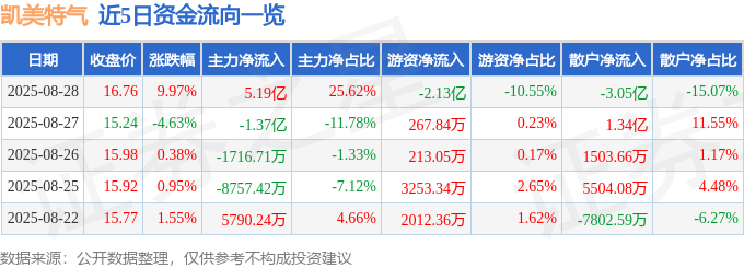 8月28日的资金流向数据方面,主力资金净流入5.19亿元,占总成交额25.62%,游资资金净流出2.13亿元,占总成交额10.55%,散户资金净流出3.05亿元,占总成交额15.07%。